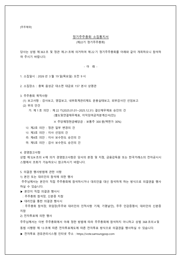 제22기 정기주주총회 소집공고